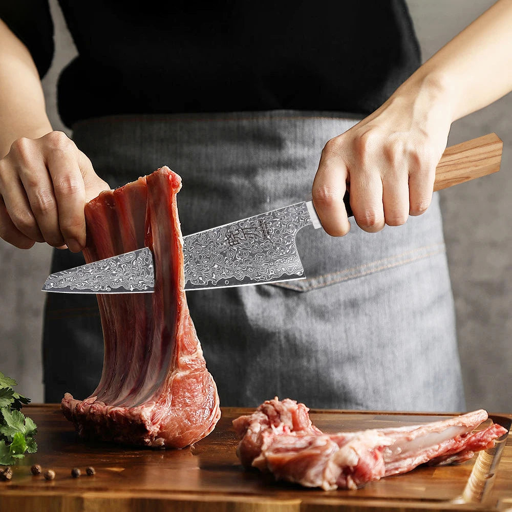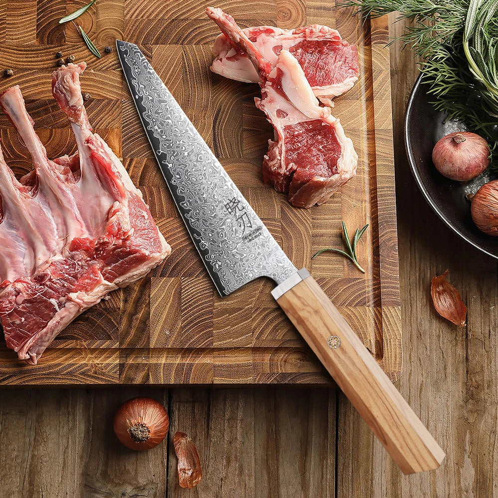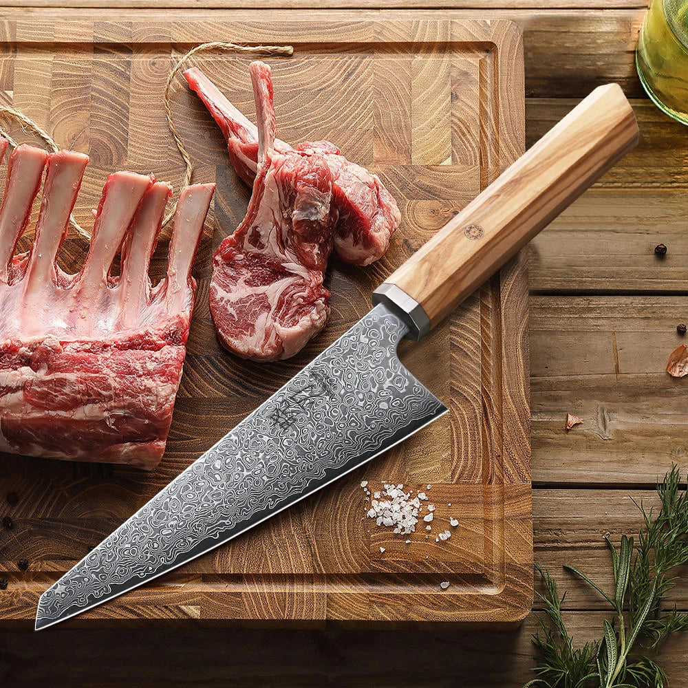 Couteau Honesuki Haut de Gamme – Acier Damas 67 Couches & Manche en Olivier