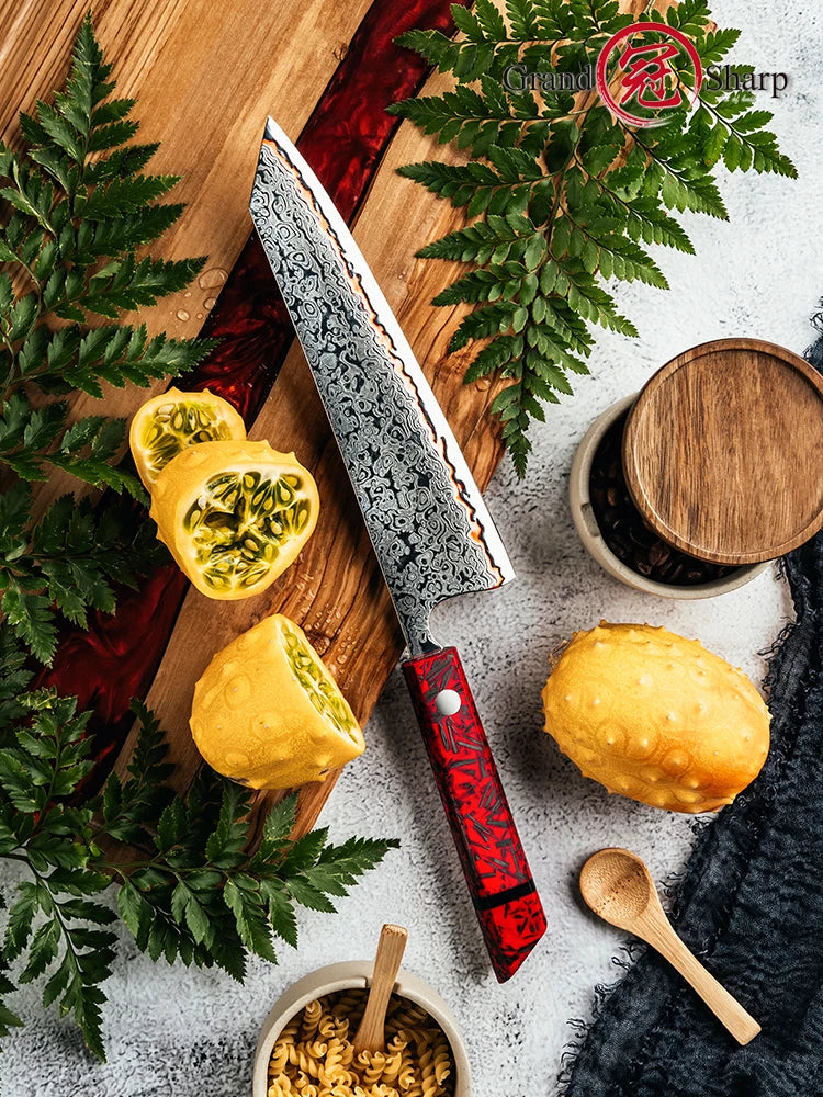 Découvrez le couteau utilitaire japonais haut de gamme forgé en acier Damas 55 couches, alliant élégance, tranchant et durabilité. Conçu pour répondre aux exigences des chefs professionnels comme des passionnés de cuisine, il offre un équilibre parfait entre puissance et précision.
