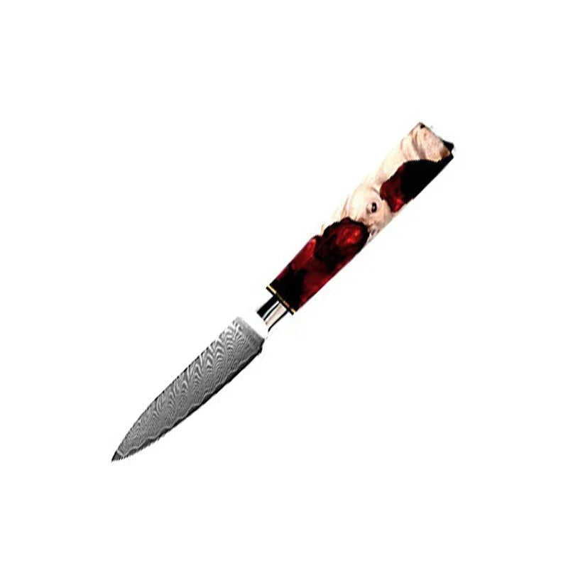 Couteau Japonais – Acier Damas 67 Couches & Manche Résine Bois Coloré