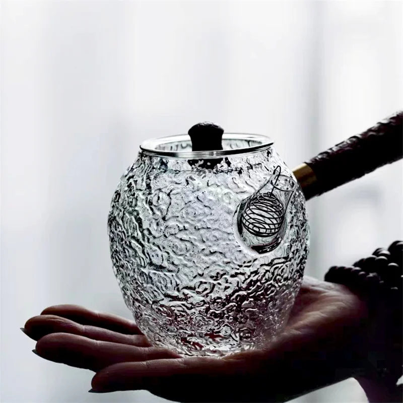 Théière Japonaise en Verre 200ml – Manche Latéral & Motif Martelé